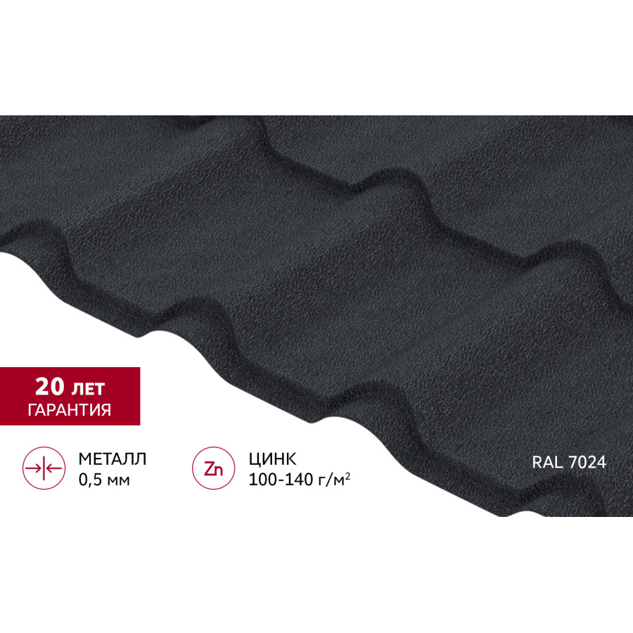 Металлочерепица "Камея" ("Kamea") v01 0,5 Drap TX RAL 7024 мокрый асфальт