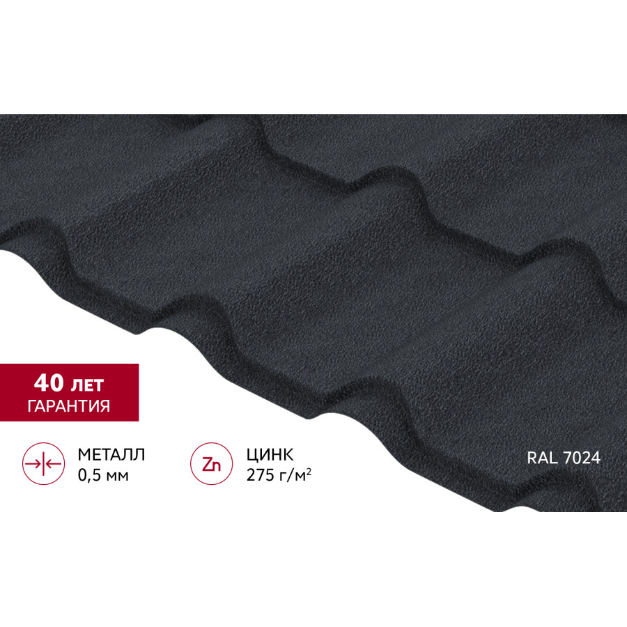 Металлочерепица "Камея" ("Kamea") v01 0,5 PurPro RAL 7024 мокрый асфальт