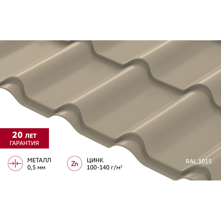 Металлочерепица "Камея" ("Kamea") v01 0,5 Satin RAL 1015 светлая слоновая кость