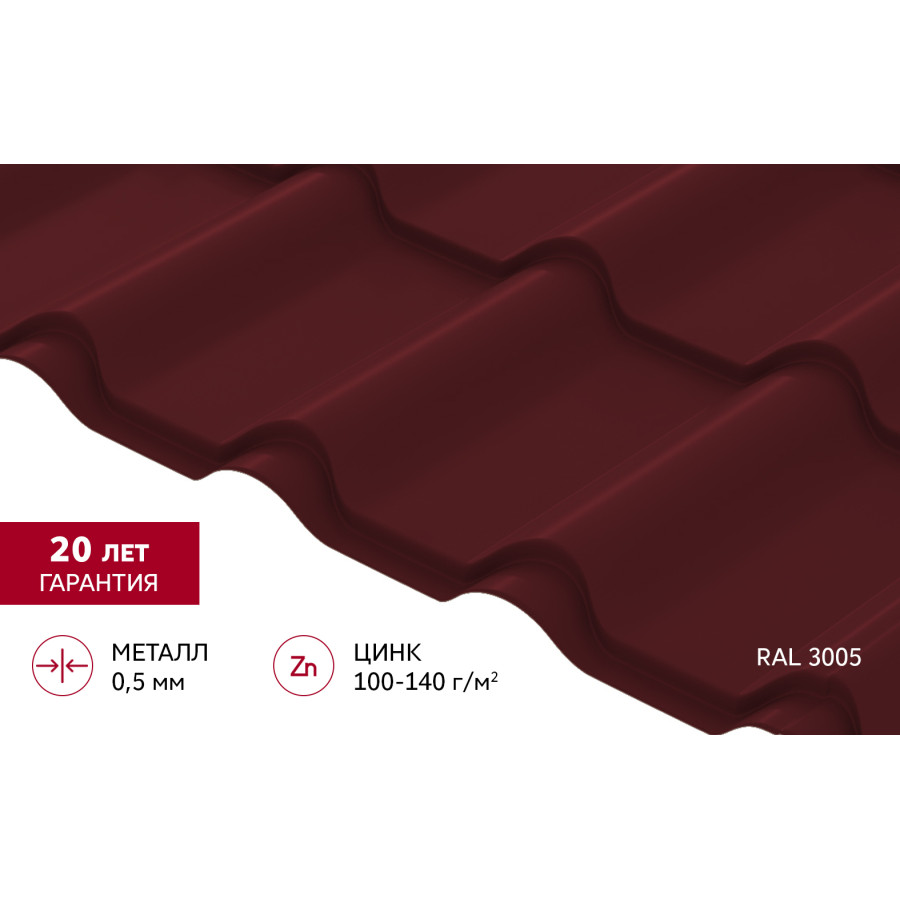 Металлочерепица "Камея" ("Kamea") v01 0,5 Satin RAL 3005 красное вино