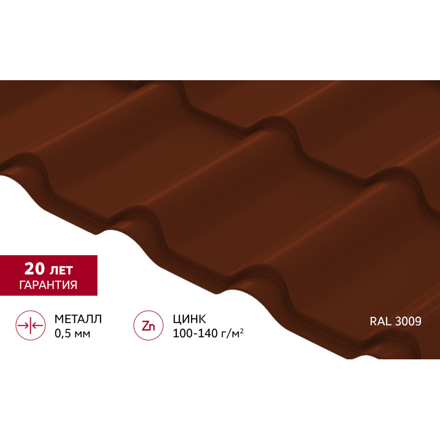Металлочерепица "Камея" ("Kamea") v01 0,5 Satin RAL 3009 оксидно-красный