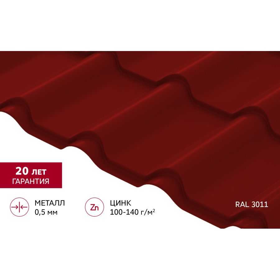 Металлочерепица "Камея" ("Kamea") v01 0,5 Satin RAL 3011 коричнево-красный