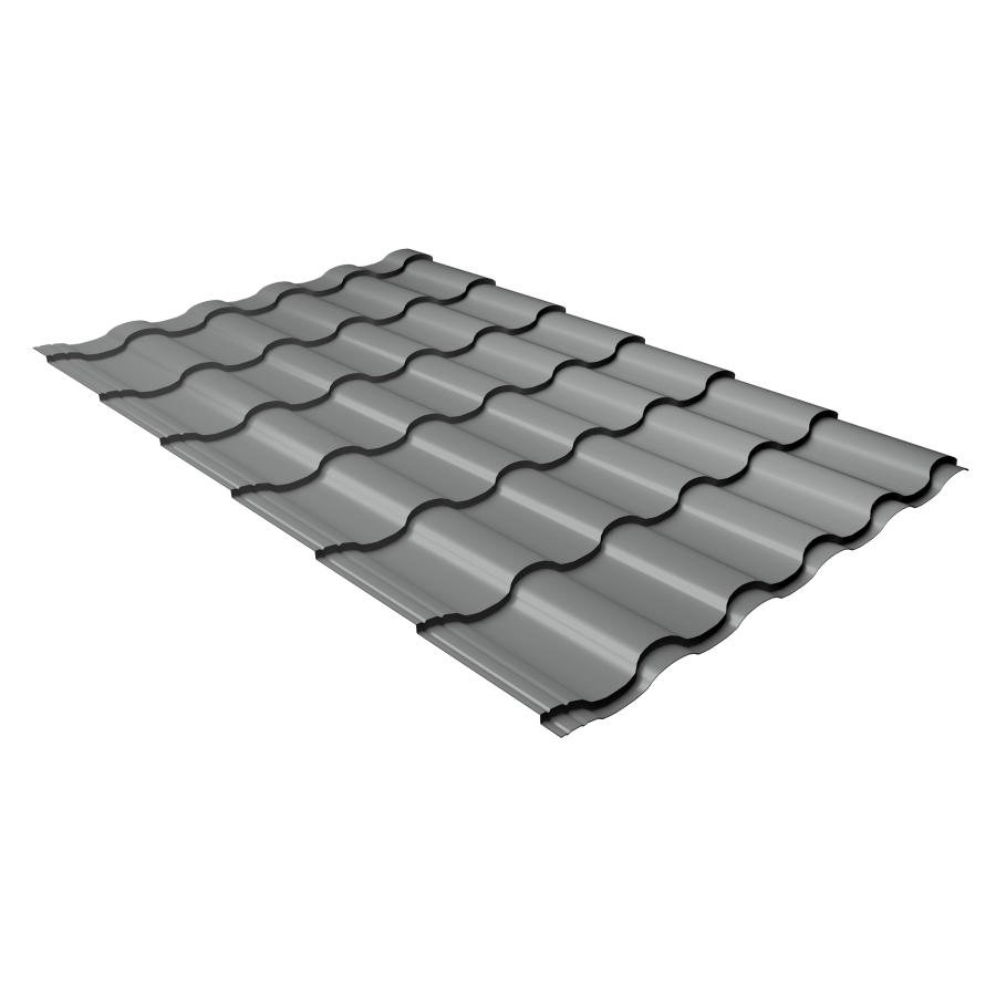 Металлочерепица "Кредо" ("Kredo") v01 0,5 Satin RAL 9006 бело-алюминиевый